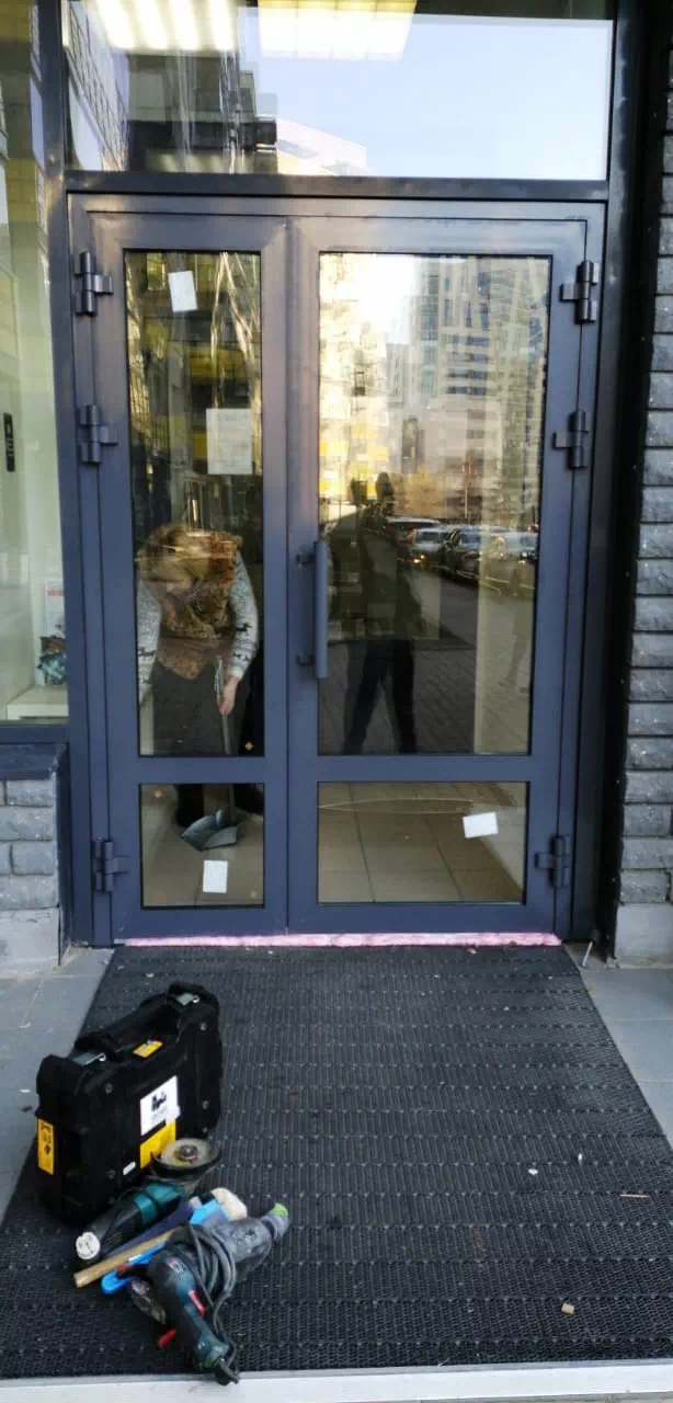 Монтаж алюминиевых противопожарных дверей от СК Гефест